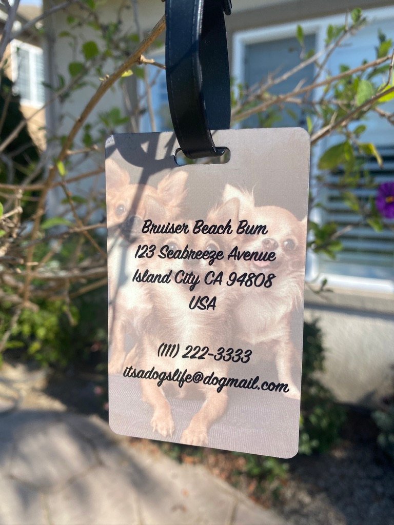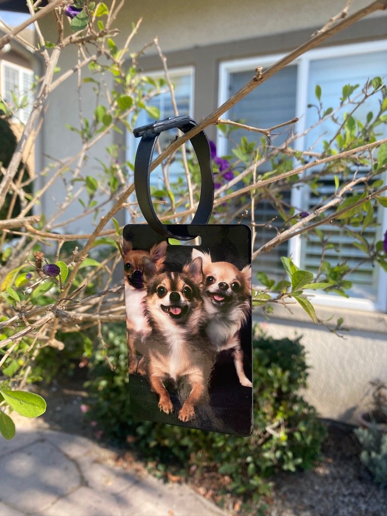 3.8″ x 2.4″ Luggage Tag. Adorn your bag tag with a fun photo of your pet. Add relevant information on opposite side.